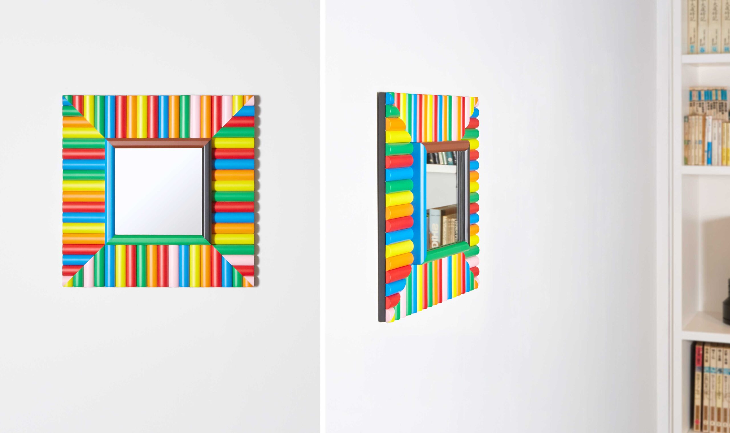 奔放な色彩で彩られたこの鏡は、単なる実用品ではなく、空間に新たな意味を添える「アートピース」として存在感を放ちます。