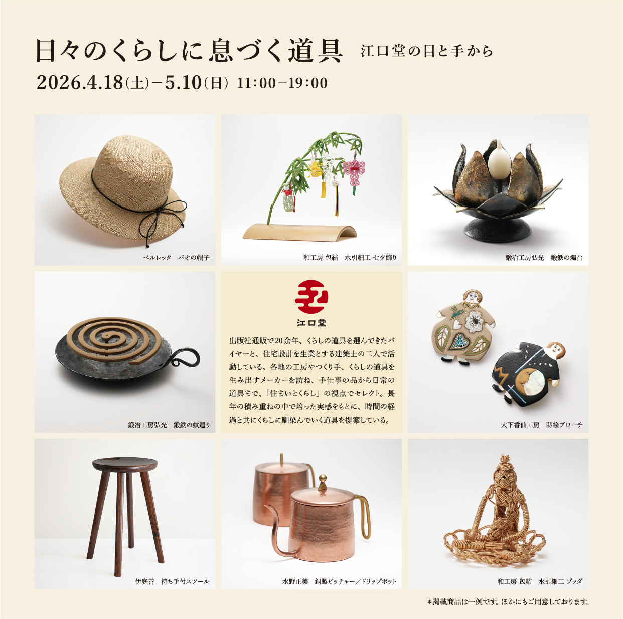 日々のくらしに息づく道具 江口堂の目と手から 展のお知らせ